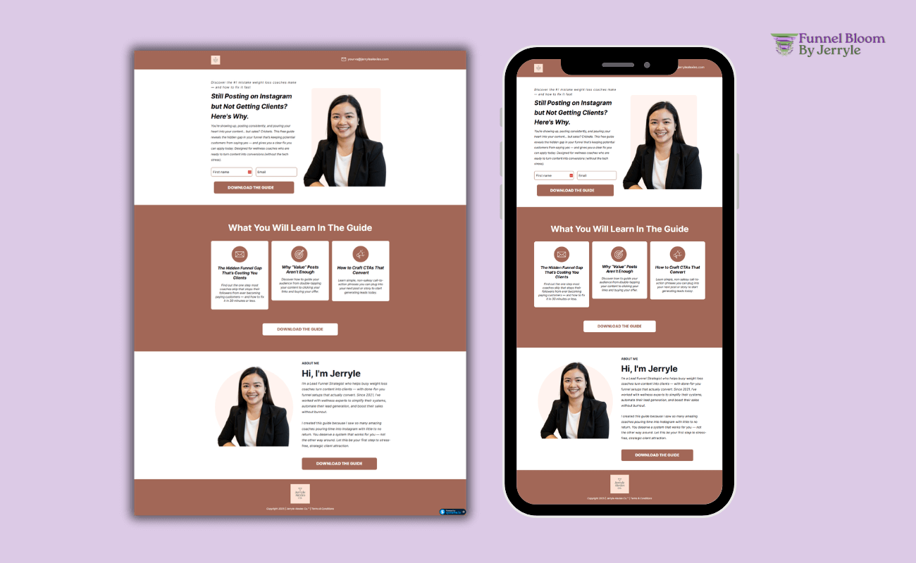 If you’re a Weight Loss or Wellness Coach who feels stuck in the content hustle with very little to show for it, this is where your breakthrough starts. Get a simple 2-step funnel you can launch in days, so clients start coming to you, not the other way around.